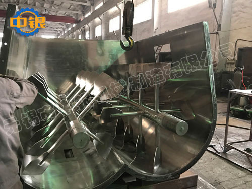 該機(jī)在w形的混合室內(nèi)裝有一對以相反方向旋轉(zhuǎn)的軸,在每個軸上安裝具